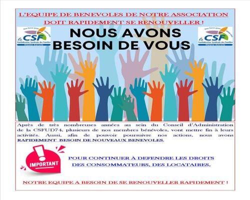 La CSF74 , n’échappe pas à cette règle et sans renouvellement à court terme de nos bénévoles qui consacrent du temps au service de l’association pour permettre la poursuite de nos action, LA CSF74, disparaîtra.